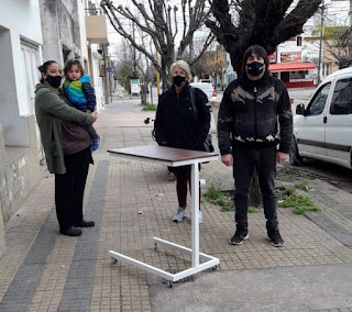 Darío Casas entregó una mesa que él mismo fabricó a la familia de Manuel Gómez, un niño que regresó a Chacabuco luego de afrontar un tratamiento contra una grave enfermedad.